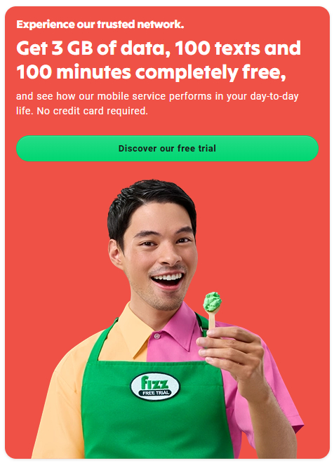 Fizz官方15天免费试用活动,主打零成本体验它家的5G网络和移动服务,全程不影响你现在的手机号码和运营商,适合想先试再换的新老用户参考使用。点击进入订购页面。