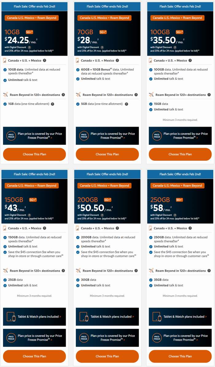 Freedom Mobile官网活动,2月2日前,全场预付费月套餐限时7.5折;