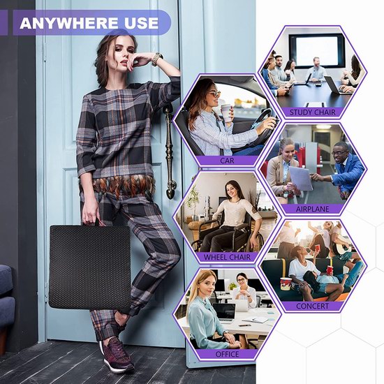 此款凝胶座垫专为久坐设计,为臀部提供柔软舒适支撑,有效降低对尾椎的压力,达至最佳舒适度减低腰背及臀部痛患,网格设计,让空气流通,使其透气性和弹性更好,凉爽透气,适合在办公室,家中,或在汽车,火车或飞机上使用。