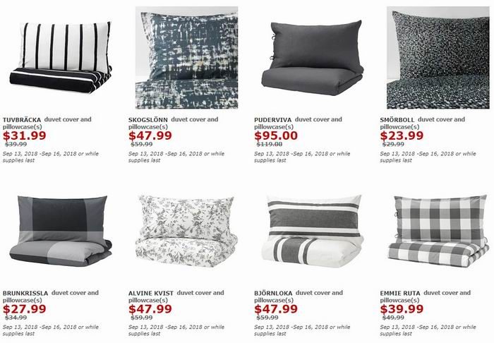 IKEA网店及店内销售,9月16日前,全场被套、枕套8折特卖,另有,9月17日前,全场床架、双层床、坐卧两用床、床头板、床盒、床用储物件等享受8.5折优惠,运费另计,点击进入订购页面:被套特卖区床架特卖区