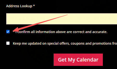 在填写申请表格时,请务必根据下拉菜单选择由加拿大邮政系统支持的标准地址,并在提交前勾选表格下方第一个确认框,确保成功领取台历!