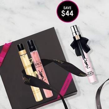YSL网店销售,精选黑鸦片等香水套装5折起,结账自选3小样,满65加元包邮,点击进入订购页面