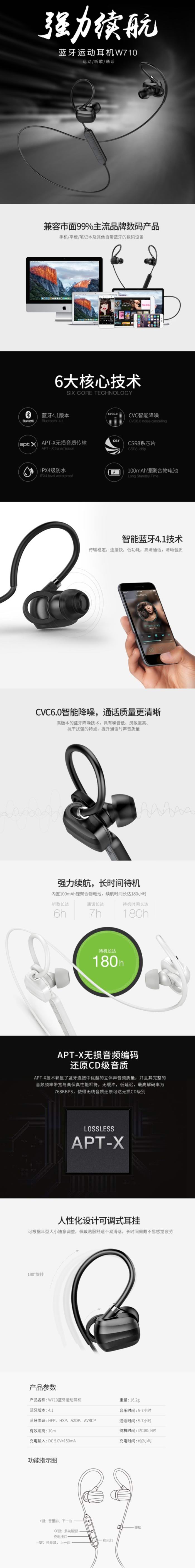 W710还采用了高保真喇叭单元,配合apt-X技术及大带宽的输出,音质相对于普通的蓝牙耳机能提升不少。电池和发声单元采用了分离式的设计,可以最大化的减少音染,让输出的声音更纯净,提升音质表现。