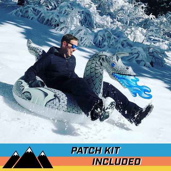 雪上甜甜圈,这个甜甜圈跟我们吃的甜甜圈可不是一回事哟,雪上飞碟不会在空中飞,它是一个在雪地上滑行的工具。大人小孩儿都可以玩,安全又刺激。雪上飞碟的形状是圆形的,就跟我们平常见到的汽车轮胎的内胎的样子差不多,只不过雪上飞碟为了防止乘坐人的衣服跟雪地摩擦,它跟雪面接触的一面是密封的,人坐在雪圈上面,手抓紧扶手,后面的人帮您从高处推下来,这样您就飞快的滑下来了,又刺激又好玩。