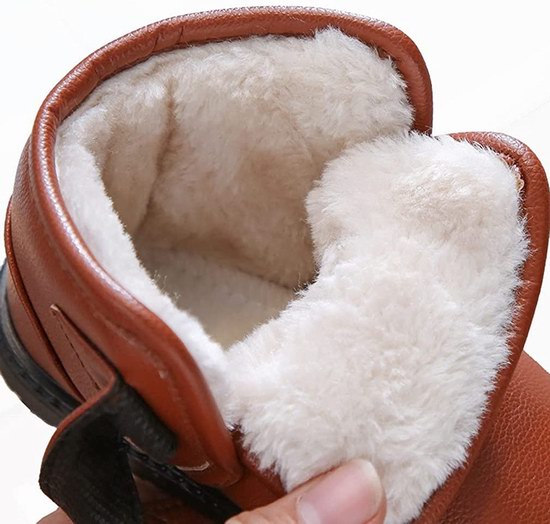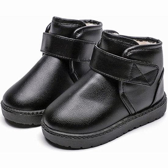 采用PU皮革防水鞋面,人造毛衬里,保暖性好,防滑耐磨大底,搭扣式侧边开口,便于儿童穿脱。