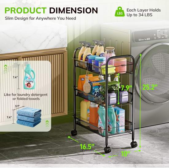 历史新低!Goovilla 三层金属收纳推车5.5折 20.34加元包邮!3色可选!