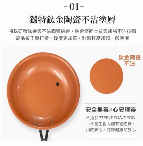 选用超耐用,防划伤和金属器具安全的Ti-Cerama增强陶瓷钛涂层,不粘效果非常好,不含PFOA和PFOS。比一般的厨具更轻,包括8.5寸平底煎锅,10.25寸煎锅,1.5夸脱和2.5夸脱汤锅和带蒸格的5夸脱蒸锅。