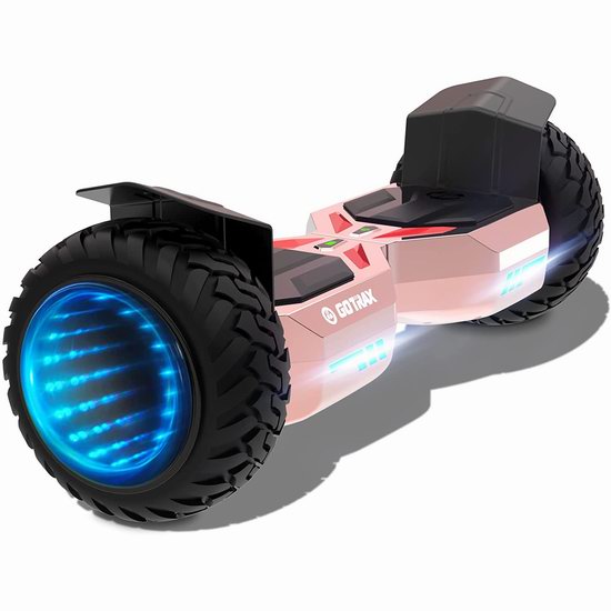 此款智能平衡车通过了美国迄今最严苛的UL2272认证,安全可靠。内置两个250W无刷电机,8.5英寸大号橡胶轮胎,最高时速为每小时12公里,自动平衡控制,支持直行、转弯、局部旋转360度,内置蓝牙音箱和LED照明灯,轮子可发出炫酷的蓝色脉冲灯光,最大载重220磅,最低载重44磅。配备36V 4Ah 144WH大容量锂电池,充满电后,可续航60-90分钟(或12公里)。