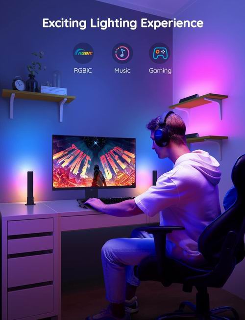 采用创新的 RGBICWW 技术,显示由 1600 万种颜色创建的彩虹般的灯光效果,DIY 制作您自己的灯光效果!智能灯是最新和最具成本效益的方式来创造一点周围的环境照明你的客厅。这些智能灯非常创新,可以改变你客厅或卧室的整体情绪。可以通过WiFi将灯条与Amazon Alexa或Google Home链接,从而控制灯条;Flow Plus同时具备WiFi和蓝牙功能,可随时随地与智能手机连接;附带了音乐同步功能,内置麦克风可感知音乐,并使LED与周围的声音同步,使用动态预设提升您的游戏体验。
