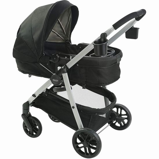 此款时尚的婴儿推车具有三阶段使用模式,可伴随宝宝的成长,转换不同的使用方式。推车结构非常稳固,四轮避震,易于操控,座位宽敞,双向座椅设计,可让宝宝可以面向妈妈或者面向世界。支持单手折叠,一人带宝宝出门也能轻松应对。可调节靠背,4种不同的倾斜位置满足宝宝的不同需求。超大储物篮可以放置宝宝必需品,后置的杯托可以放置父母的水杯、钥匙或者手机等物品。婴儿提篮可以充当宝宝小时候的汽车安全座椅,EPS缓震泡沫,5点安全带,头枕可移除,承重能力为4-35磅。