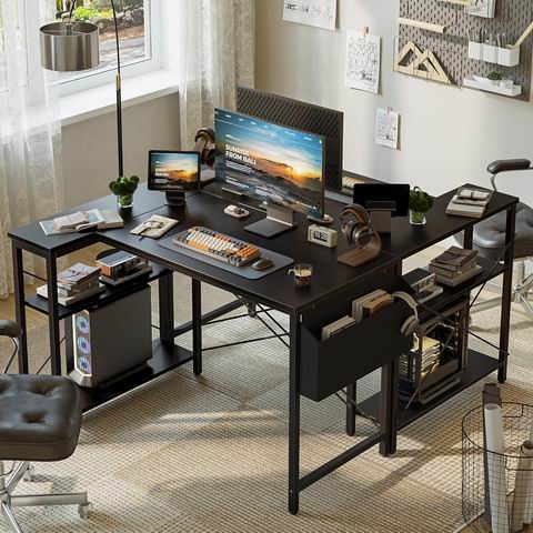专为小空间打造,转角布局更省面积,配有可翻转搁板(左右都能装)和收纳袋,方便把主机、书本与杂物分区收纳,让桌面更整洁。桌体采用金属框架 + MDF 板材,并加入 X 型横梁加固,提升稳定性与耐用性;可作为电脑桌、办公桌、游戏桌或学习桌多场景使用。安装流程相对简单,附带说明书与工具,并提供技术支持。