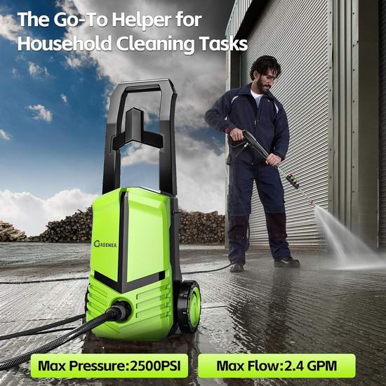 历史新低!GREENER 2500PSI 2.4GPM 高压清洗机4折 59.99加元包邮!