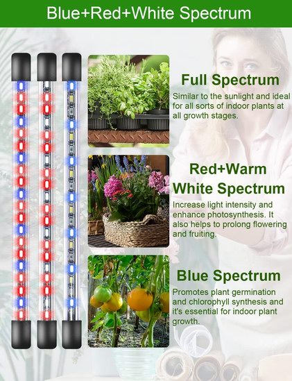 采用全光谱LED节能灯,搭载80个LED灯(24个红色,28个蓝色,28个白色),更好地模拟太阳光,几乎满足植物所有的照明需求,可快速促进植物生长,最大限度的发挥光合作用,具有4个灯头,9级亮度调节,3/9/12小时智能定时开关,循环照明,是室内培植植物、育苗和盆景的首选。