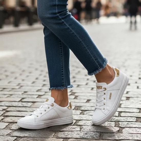 这款女式运动鞋侧面饰有GUESS标志,采用本季最流行的时尚色彩混搭而成,鞋面采用合成革材质,系带运动鞋款式,圆头设计,菱形针迹图案细节。舒适时尚,绝对让你眼前一亮。