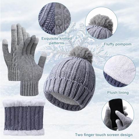 这款女士冬季保暖三件套包含针织帽、圆领围巾和触屏手套,专为运动户外设计。套装采用双层结构:外层为优质腈纶,内层为加厚抓绒,兼具保暖与透气性。其手套拇指与食指指尖配备触屏功能,方便户外操作电子设备。以经典灰色和简约针织设计为特点,可单独或组合佩戴,适合日常通勤、跑步、滑雪等多种场景,并可作为节日礼物。