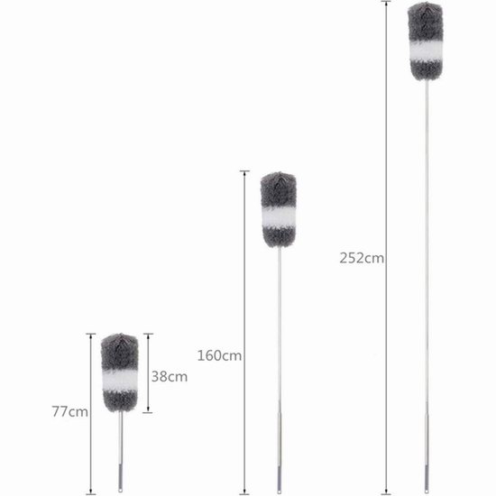 采用坚固的不锈钢手柄,长度可在77-252厘米之间调节,高处矮处都能打扫,重量轻巧不累手,除尘不伤物面,擦拭不留痕迹,除尘刷长达38厘米,做工精良,刷头可拆。