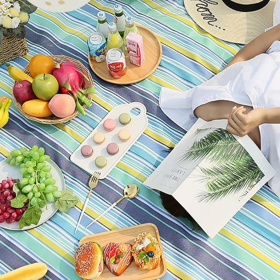 采用牛津布制成,双层结构,耐磨舒适,背面采用环保PVC材质,防潮不粘沙,可防止地面湿气渗入,折叠后非常小巧,便于携带,展开后尺寸为150 x 200厘米,足够坐下4-9人,非常适合家庭春游和露营使用。