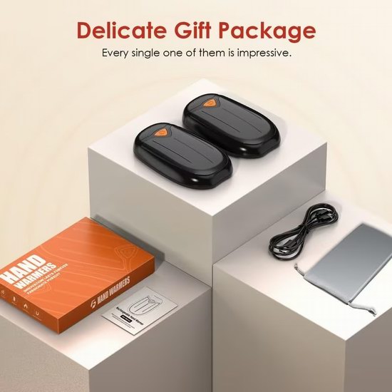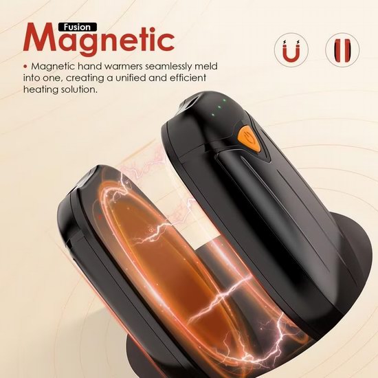 采用创新二合一磁吸式设计,不仅可以作为一个暖手宝使用,还可将其一分为二,便于双手取暖,或与亲友分享使用,360°快速均匀加热,三挡温度(40-45℃、45-50℃、50-55℃)满足不同需求,容量高达8000mAh,最长可加热10小时,重量仅5.5盎司,相当于半部手机,非常轻巧。