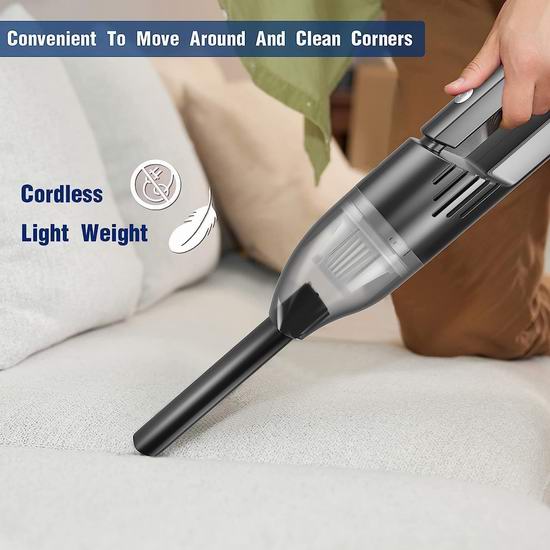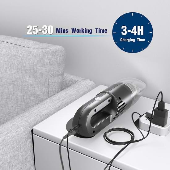 这款无绳吸尘器搭载120W高效电机,提供高达6Kpa的吸力,能够轻松清除隐藏在沙发、地垫和狭窄空间中的头发、颗粒和微小碎屑。无论是家庭清洁还是汽车内部清洁,都能胜任。支持干湿清洁,附带多种清洁工具,如加长软管、缝隙工具和除尘刷,可满足不同清洁需求。内置 4000mAh 锂电池,3-4小时即可充满电,续航时间长达30分钟。