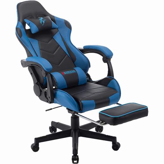 这款电脑椅性价比高,具有出众的人体工学功能,顶部的高密度海绵衬垫、头枕和腰枕提供了额外的支撑和耐用性,使玩家在每个游戏位置的保持最佳舒适性,整个座椅几乎完全水平,供午间休息时使用。