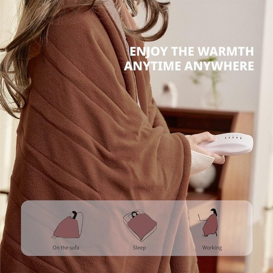 此款电热毯通过严格的 ETL 和 FCC 安全认证,采用超柔软丝绒法兰绒,温暖舒适,5档热量可调,3小时自动断电,省电又安全,适合在寒冷季节睡觉、办公、学习或看电视使用,尺寸为50x60英寸,拆下电源控制器后可机洗。