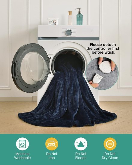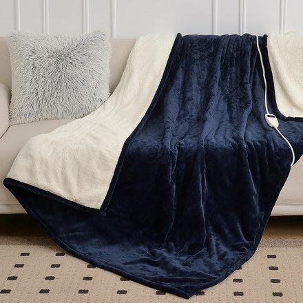 此款电热毯通过ETL安全认证,采用先进的 PTC 和 NTC 加热技术,几分钟内均匀加热,选用200 GSM蓬松光滑的法兰绒面料和200 GSM夏尔巴羊羔绒衬里材质,柔软舒适,10档热量可调,1-8小时定时关闭,适合在寒冷季节办公、学习、看电视或睡觉时使用,拆下电源后可以机洗和低温烘干,配备9.5英尺(2.9米)超长电源线。尺寸为62 x 84英寸。