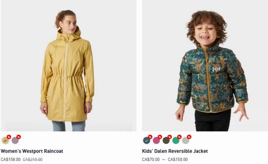 Helly Hansen 网店销售,精选户外服饰5折起,满99加元包邮。点击进入订购页面。