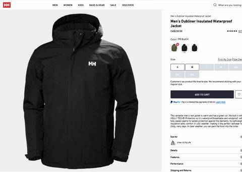 Helly Hansen 男式 Dubliner 防水雨衣外套 黑色款 158.48加元(官网原价 220加元,M码)