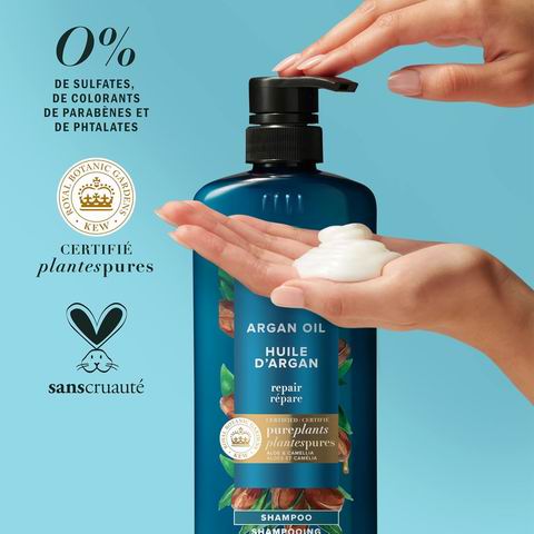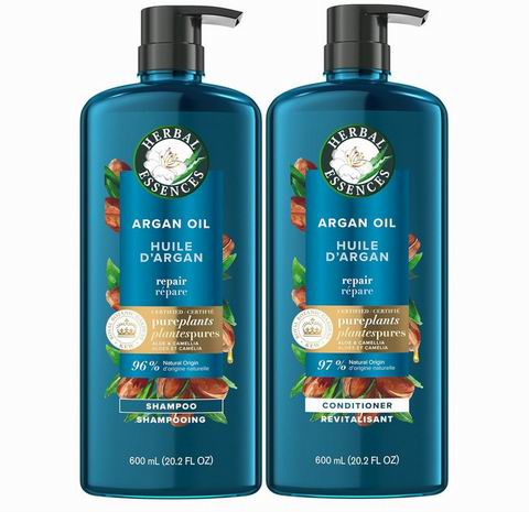 这款草本精华摩洛哥坚果油洗发水与护发素套装(600ml×2),以山茶花油和芦荟为核心成分,深层滋养并修护受损发质,让秀发轻盈柔顺、丝滑易梳。山茶花油能模拟头发天然油脂,快速吸收、不厚重;摩洛哥坚果油则有效加强修护力,恢复光泽与顺滑手感。配方不含对羟基苯甲酸酯、染料和邻苯二甲酸酯,通过 PETA 认证无动物实验,植物成分经英国皇家植物园邱园认证,天然温和,适用于所有发质,尤其适合干枯、受损发质。