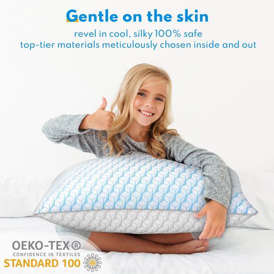 这款枕头填充柔软的进口羽绒替代中空纤维,模仿酒店枕头的奢华触感,促进空气自然流通,带来独特的慢回弹感,完美融合了柔软度和支撑力,让您一夜酣眠,焕发活力。采用升级版冰丝面料,触感柔滑细腻,具有卓越的透气性和吸湿排汗功能,助您整夜保持清爽舒适。