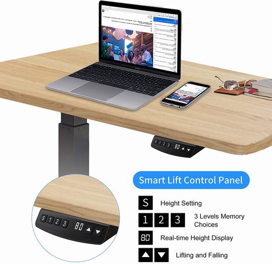 这是一款可以提升办公学习幸福感的好物,坐站交替,缓解颈椎腰椎压力!采用加大桌面,宽度160厘米,深度70厘米,高度支持27.5-45.2英寸调节,可预设3个高度,触摸控制,液晶屏显示实时高度,比手动更方便也更稳固。双电机静音运行,噪音不超过45分贝,20秒即可从最低高度升到最高高度,内置智能防撞系统,传感器感应到障碍物时自动断电,同时调整高度,防止事故发生。