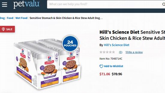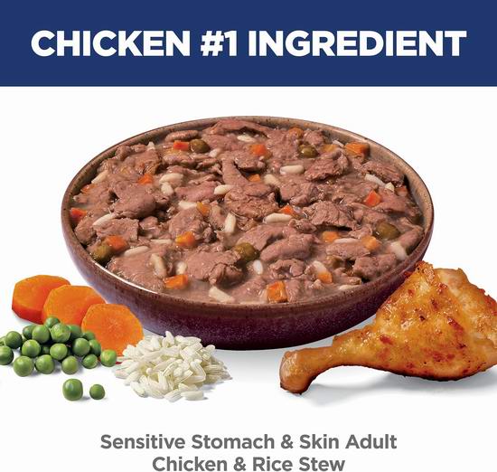 Bug超级白菜!历史新低!Hill's Science Diet 敏感胃 敏感肤 鸡肉炖饭 成年湿狗粮(2.8盎司x24袋)1.6折 13.19加元!