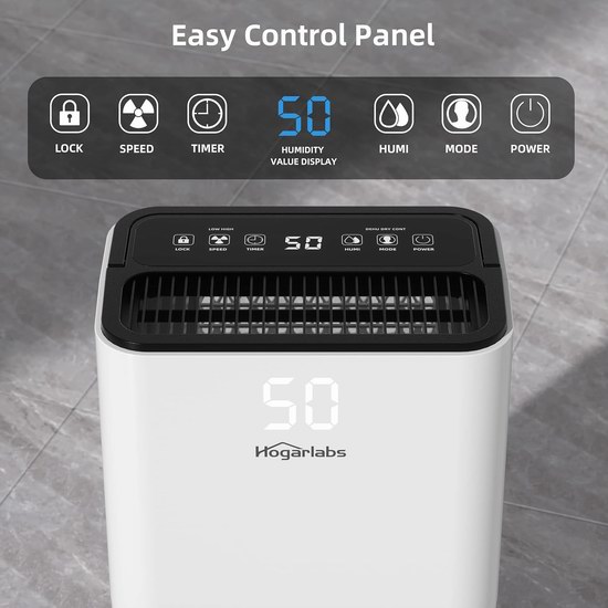 此外,除湿机提供两种排水方式:0.66加仑水箱和3.28英尺排水软管,可供选择自动或手动排水。设备智能设计包括定时器功能,可设置1-24小时的开关时间;安全的儿童锁功能,有效防止儿童和宠物误操作;顶部触摸控制面板方便操作;液晶显示屏直观显示湿度信息;超静音运行,噪音低至36 dB;DEHU和CONT模式下可调节风速;并配备易拆卸清洗的过滤网,确保设备长期高效运行。