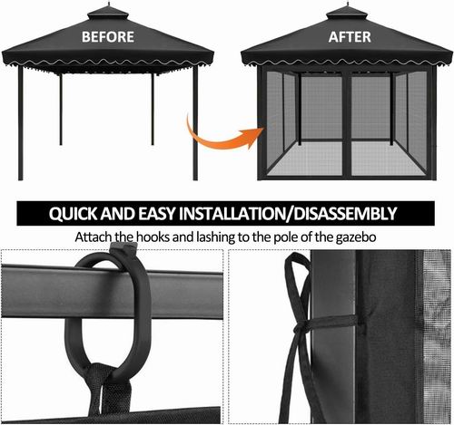 • 尺寸:适用于10' x 10'或10' x 12'凉亭,建议购买前测量凉亭尺寸。