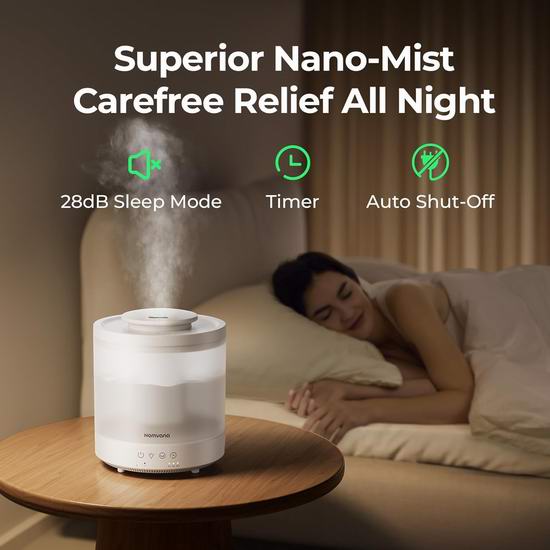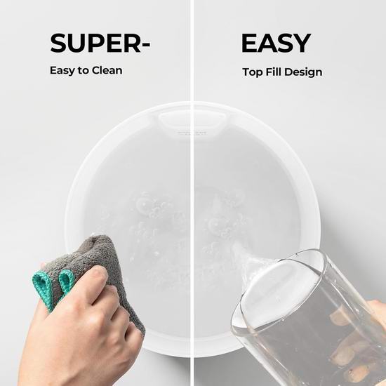 此款加湿器不含BPA,具有1.5L容量,28分贝超低噪音运行,不会影响睡眠,顶部开口,加水更方便,加满水后可持续工作15小时,一旦水用完它会自动关闭,安全可靠。顶部喷嘴散发出超精细冷雾,可以提供水分,保护您的皮肤。可添加香薰精油,为您提供可爱的香味舒缓的环境帮助你从疲惫的工作中缓解,呼吸清爽的空气,内置7色柔光夜灯。