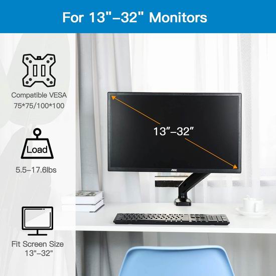 Huanuo 13-32英寸 显示器旋臂支架7.3折 36.54加元包邮!