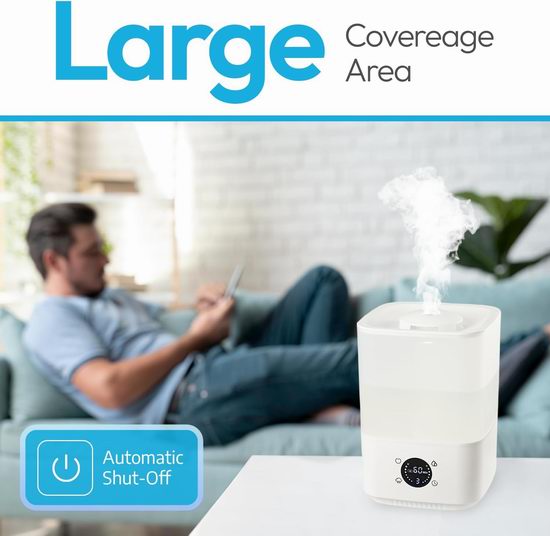 此款加湿器具有4升大容量,采用超声波冷雾技术,智能调节湿度,24分贝极低噪音运行,不会影响睡眠,雾化强度可调,加湿面积可达20-35平方米,一次加水,可持续工作25小时,一旦水用完它会自动关闭,安全可靠。大开口箱体,易于灌水和清洗。360度可旋转喷嘴散发出的超精细冷雾,为您提供清爽的空气,同时通过提供水分,保护您的皮肤。