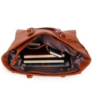 这款手提包是由合成革制成,设计简单大方, 在前面的有一个皮表装饰,在后面,有一个拉链袋