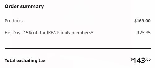 友情提示:此次Hej Days促销不适用于厨房系统(如METOD)、PAX衣柜系统、家电产品、礼品卡、“As-Is”特价区商品、餐厅内用餐消费。