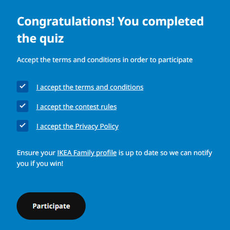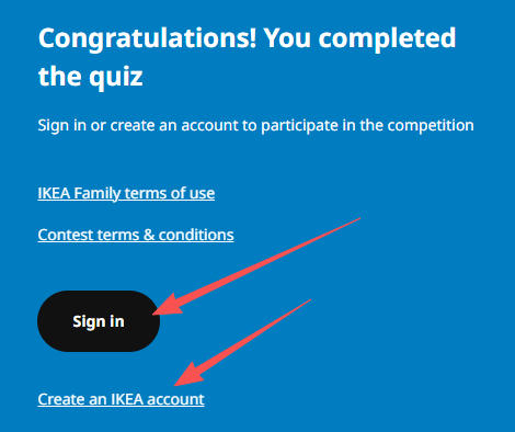 完成答题后,可选择注册或登陆IKEA Family会员账号: