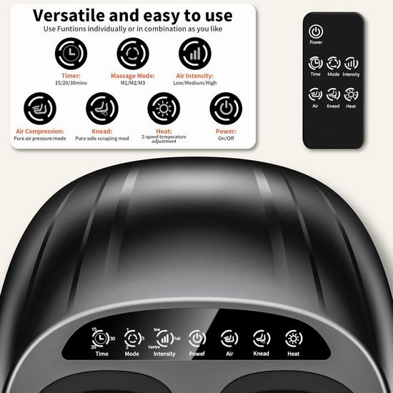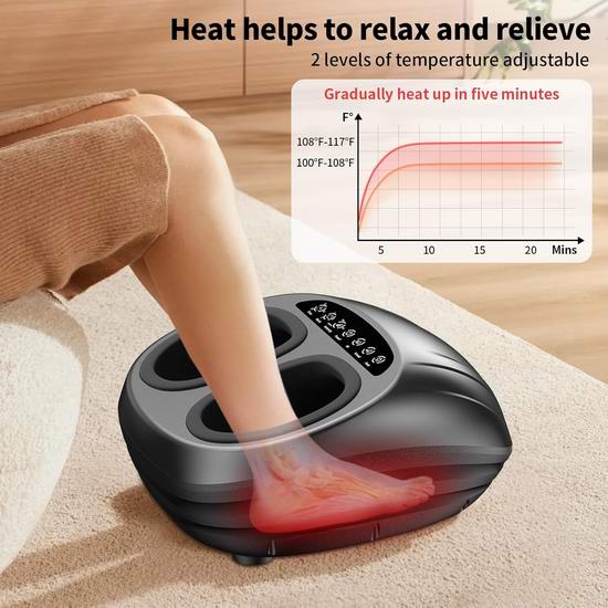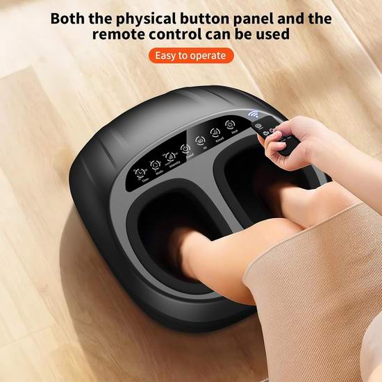 IKristin 指压足部按摩器——带加热功能,深度揉捏按摩,缓解足部疲劳。支持独立调节温度(最高70°C)、按摩强度及定时(15/20/30分钟),配备遥控操作,无需弯腰。居家办公皆适用,30天质保无忧,是送亲友或自用的舒心之选。