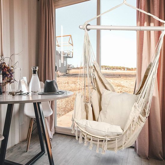 采用柔软耐用的涤纶面料制成,经久耐用,外形美观时尚,配备两个舒适软枕,室内户外均可使用,可以挂在任何地方,最大承重300磅。
