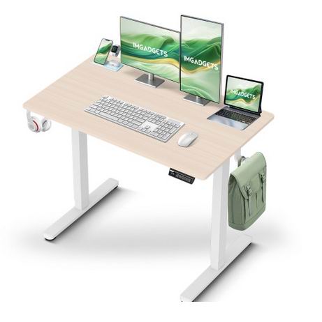 IMGadgets 电动升降桌配备 40x24 英寸宽敞台面,可容纳多台显示器及笔记本,附带 2 个挂钩,方便收纳耳机或包袋。采用通过 CARB、UL1310、FSC、TSCA 认证的环保材料,防刮防水,稳固承重达 70 公斤。电机运行平稳安静(低于 55 分贝),支持 3 组记忆高度设置,升降速度达 20 毫米/秒。简易安装设计,30 分钟即可完成,是家用或办公场所兼顾效率与舒适的理想坐站两用桌。