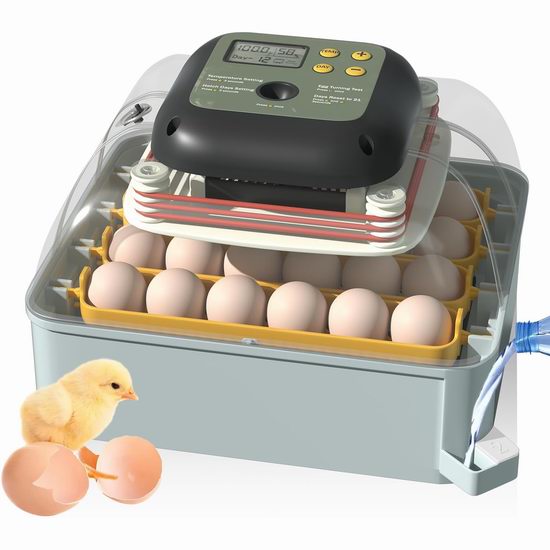 这款鸡蛋孵化器通过强大的循环风扇驱动感应气流系统,确保均匀热量分布和温度稳定性,是理想的孵化选择。智能温度和湿度控制系统使湿度监测变得简单,无需额外湿度计,确保成功孵化。内置LED鸡蛋蜡烛让您轻松观察胚胎发育,而外部注水功能无需打开盖子,减少热量损失,提高孵化率。自动鸡蛋旋转器在孵化前三天停止旋转,防止过度翻蛋,进一步优化孵化率。