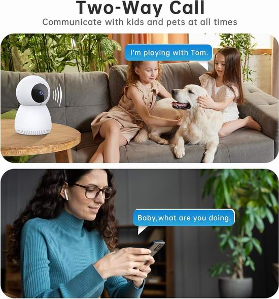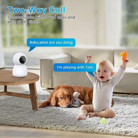 这款室内安防监控摄像头采用升级芯片,提供清晰的 2K 高清画质,360°广角视野,支持平移、倾斜和缩放等功能,支持5G/2.4GHz双频 WiFi,支持Alexa,通过手机App可管理多个摄像头,并在一个屏幕上显示多个实时视频,助您随时掌握家中安全状况。内置麦克风和扬声器,让您外出时也能通过手机进行双向语音通话。当家中检测到人或宠物移动时,摄像头会立即向手机发送警报,并自动录制一段 10-15 秒的警报视频上传至云端,保存24小时,让您随时随地守护家中安全。支持最大128G TF卡本地储存。