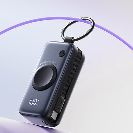 采用钥匙扣式便携设计,重量仅约113克,小巧轻便,支持 20W PD 快充,内置 USB-C 数据线及 Apple Watch 专用 5W 无线快充模块,可在约 1.1 小时内为 iWatch 充满电。符合 TSA 标准,电量可为 Apple Watch 提供最多约 6 次完整充电,或为 iPhone 16 充至约 91%。配备额外 USB-C 接口,支持同时为 iPhone、Apple Watch 和 AirPods 等设备充电。INIU 采用高规格安全材料,并提供 3 年质保与终身技术支持,是通勤与旅行的高效随身备用电源方案。