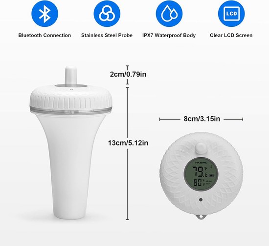 此款温度计,内置蓝牙技术,采用IPX7防水设计,搭载液晶显示屏,可漂浮在水面上,可通过手机查看游泳池、水族箱和浴缸实时温度和历史数据。