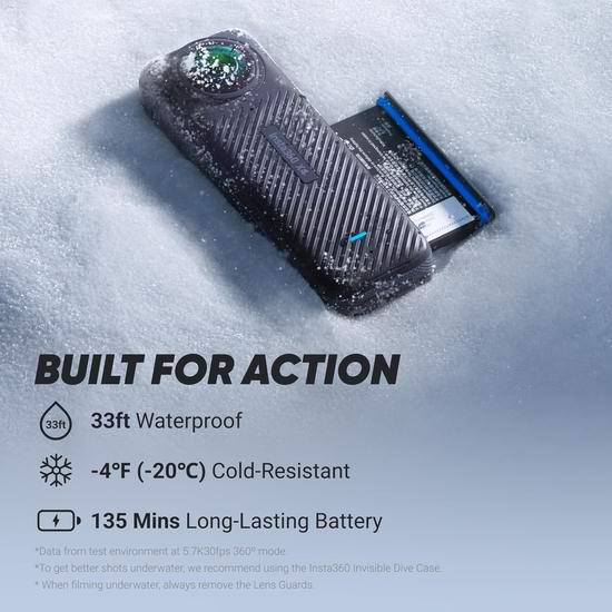 支持沉浸式 8K 或 5.7K 60fps 360° 视频录制,搭载主动 HDR 技术,确保色彩还原精准、画面细腻。借助 AI 应用程序,用户可以在后期轻松调整视角,无需拍摄时对准镜头,标志性的隐形自拍杆则为您营造无人机般的第三人称视角。额外提供 4K 和 170° 超广角模式,适合广角动态拍摄。配备 FlowState 稳定技术和 360° 地平线锁定,Insta360 X4 能够提供流畅稳定的画面,适应多样化的拍摄场景。坚固耐用的机身设计,支持 33 英尺(10 米)防水和低至 -4ºF(-20°C)的耐寒性能。套装包括 8K 防水 360° 运动相机、4K 广角拍摄功能、隐形自拍杆、可拆卸镜头保护装置,以及拥有 135 分钟续航能力的高效电池。