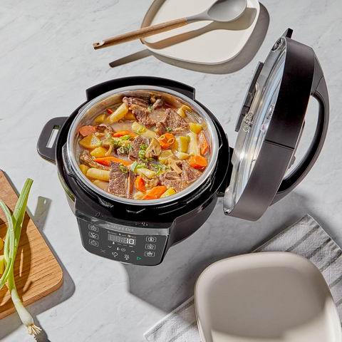 一款4夸脱容量的7合1多功能电压力锅,集压力锅、慢炖锅、电饭煲、蒸锅、煎炒锅、酸奶机和保温锅于一体,适合学生、单身人士或小家庭使用。体积小巧,烹饪面积相当于8英寸平底锅,且配有进度指示器方便监控烹饪状态。与慢炖相比,烹饪速度提升高达70%。其防旋转设计使煎炒更稳定,可放入洗碗机清洗的锅盖和不锈钢内胆也让清洁更加轻松。随附的应用程序包含2000多种食谱,助您轻松烹饪各种美味。