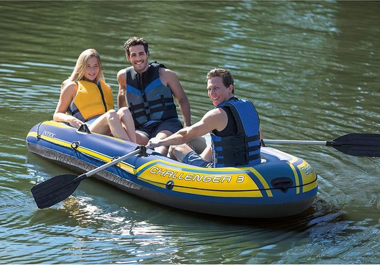 这是一款专为休闲划船或湖泊钓鱼设计的充气船,超韧PVC材质能抗击磨损、冲击和穿刺,最多可容纳3名成人,船底I-Beam刚性支撑,非常舒适耐用,3个气室的设计充分保证人身安全,配备安装配件,可以安装电动马达,船体尺寸294.64 x 137.16 x 43.18厘米,最大承重660磅。配备2个48英寸铝桨、1个充放气泵和1个修复补丁包。
